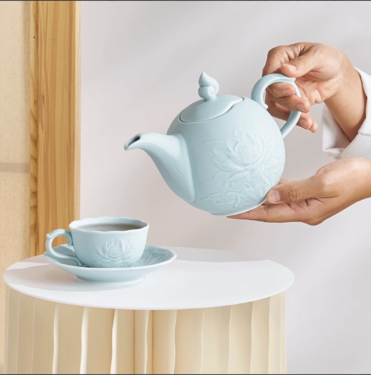 Bộ trà 0.7 L - Sen - Men Ngọc Sương Mờ gồm :